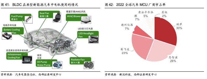 · BLDC电机应用广泛,MCU等驱动控制芯片增长可观。