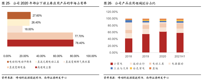 传统领域持续创新,获取需求增量。公司产品主要应用于智能小家电领域,在泛小家电的下游产品繁多,包括扫地机器人,高速吹风筒,油烟机,热水器,无人机,洗碗机,各类型小风扇等,以及待拓展的新产品和小电机应用需求,公司在传统领域持续创新新技术方案,创造新需求。