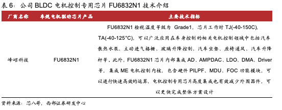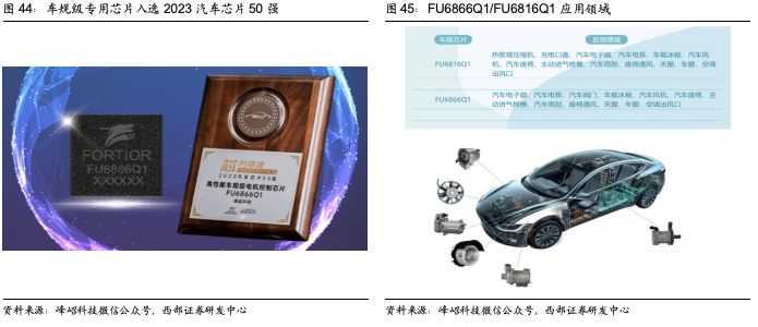 2023年,公司车规级专用芯片FU6866Q1获得上级相关部门和行业权威机构的肯定,入选2023汽车芯片50强。其推出的FU6866Q1/FU6816Q1高性能专用芯片通过SGS机构检测获得AEC-Q100车规认证,芯片集成多种观测器,在低速大负载场景和高精度控制场景应用表现优异,公司在汽车电机控制应用领域进一步扩大。