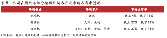 自2018年起,厨电市场总体趋于稳定,公司终端客户在各领域的市场占有率也相对稳定。以洗碗机、料理机为代表的新兴厨电增长强劲,同时传统厨电油烟机开始变频化进程,因此终端客户产品出货量经历大幅增长。
