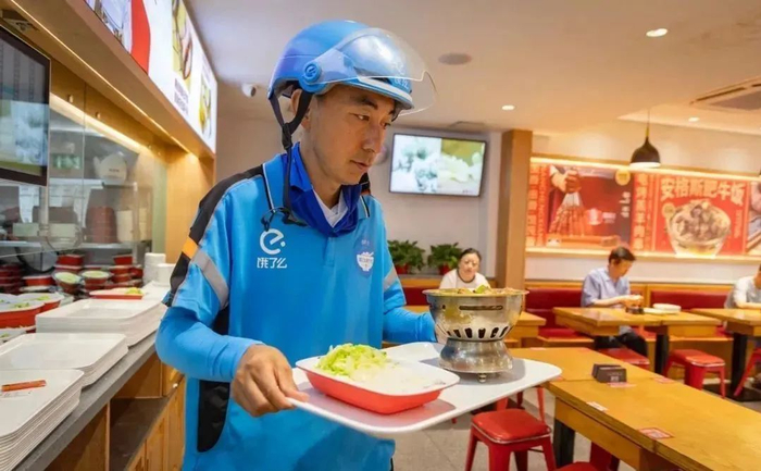 在系统保障投入方面,12月举行的第七届蓝骑士节上,饿了么宣布针对骑手的“衣食住行用”,正式启动“五个一”服务——围绕“一个站、一张床、一顿饭、一个码、一点碳”等,继续做好骑手休息、住宿、就餐、出行、用电关键小事。
