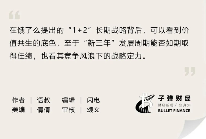在此背景下,想要撬动更大市场获得发展先机,就必须平衡好骑手、商家、用户、平台四方权益关系。在饿了么提出的“1+2”长期战略背后,可以看到价值共生的底色,至于“新三年”发展周期能否如期取得佳绩,也看其竞争风浪下的战略定力。