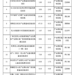 江西省/河南省(各3个项目):江西聚焦无人机厂房与分宜产业园;河南布局安阳试飞场和5G技术基地,两省专项债融资分别达5.45亿、3.85亿。