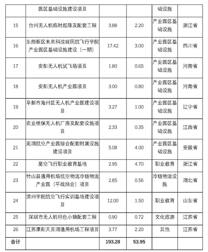 从地域分布看:四川省(5个项目):集中在自贡航空产业园,涉及无人机生产、创新中心等配套建设,总投资38.42亿元,占全国19.9%。