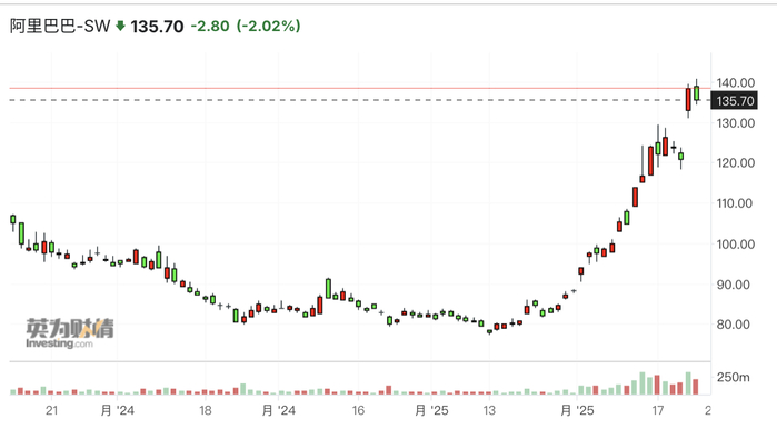 在阿里巴巴财报发布后,国际投行上调目标价,高盛已经将港股目标价从114港元提升到156港元;Jefferies则将目标价从156港元提升至160港元。