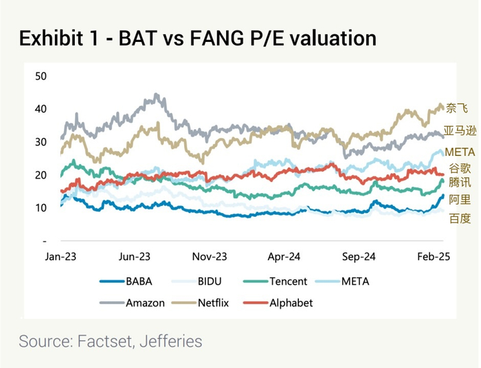 近期,境内外分析师纷纷开始关注“中国科技十姐妹”(即阿里巴巴、腾讯、美团、小米、比亚迪、京东、网易、百度、吉利和中芯国际),称它们自2023年年底至2025年2月12日的累计涨幅已超过美股“科技七巨头”(即苹果、微软、Alphabet、特斯拉、Meta、英伟达和亚马逊)同期的表现。