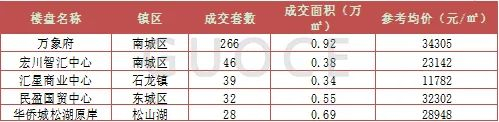2024年写字楼市场方面,办公网签面积排行中,南城街道项目成交热度最高,本年度办公成交面积排行首位的是万象府,共计成交0.92万平米(266套)。