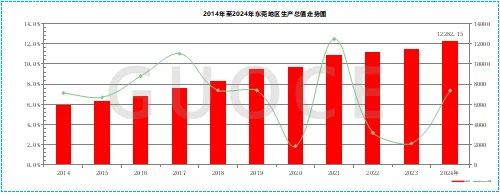 2024年,我市地区生产总值12282.15亿元,按不变价格计算,同比增长4.6%。其中,第一产业增加值38.54亿元,同比增长0.5%;第二产业增加值6800.80亿元,同比增长6.6%;第三产业增加值5442.81亿元,同比增长2.1%。2024年,东莞全力稳住经济基本盘,东莞坚定不移地贯彻稳中求进的工作总基调,围绕 “科技创新 + 先进制造”,积极推动一系列增量政策落地生效,经济发展呈现出良好态势,高质量发展稳步推进。