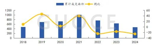 2018年-2024年北京商品住宅成交量及同比走势