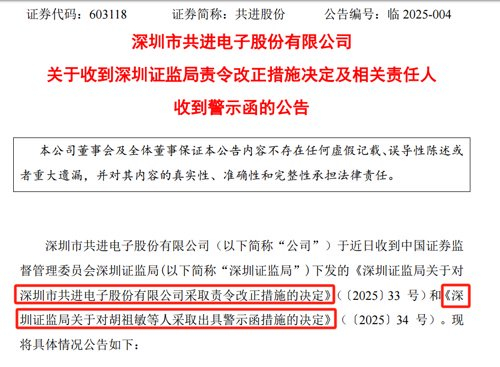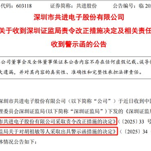 共进股份被责令改正,深圳证监局查明多项问题