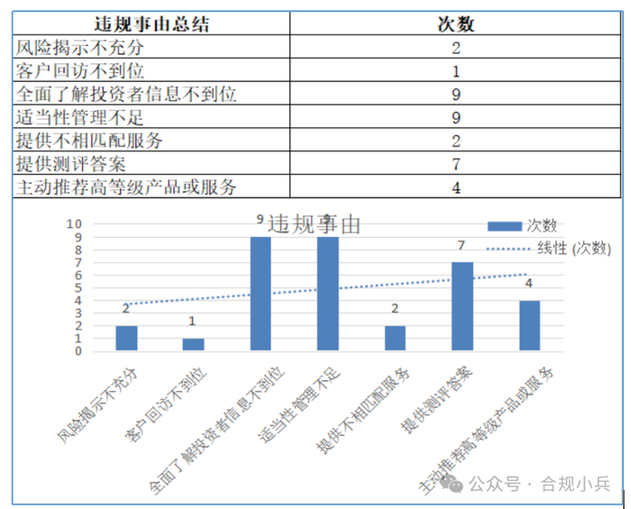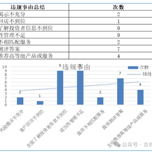 同时,部分地方监管局向证券公司内部通报了辖区部分经营机构投资者适当性管理不到位的情况。主要关注的问题表现:投资者适当性测评内容与实际情况不一致;向投资者销售产品或提供服务时未向投资者了解收入来源、债务等财务状况;向投资者主动推介风险等级高于其风险承受能力的产品;使用“安全”“年化收益率”等误导投资人风险判断或片面强调集中营销时间限制的措辞;未每半年开展一次适当性自查并形成自查报告;适当性自查报告发现部分存量公共客户风险测评到期、证件有效期到期的任务未处理,但未按照报告执行整改要求;从事客户开发业务的人员参与了客户适当性评估环节等。