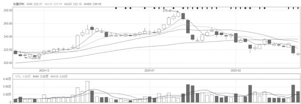 回溯东鹏饮料的股价走势,2025年1月10日堪称一个关键节点,当日公司股价强势攀升至历史最高位,达到278.49元/股,彼时市场对其前景一片看好,投资者热情高涨。然而,好景不长,自那之后,股价便如同坐上了滑梯,开启了“一路下滑”的态势。截至减持计划公告发布之日,收盘价已滑落至215元/股,相较于最高点跌幅颇为显著。