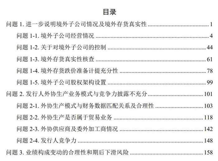 (4)境外存货跌价准备计提充分性。根据问询回复,公司精密光电仪器存货各期末账面价值分别为41,553.24万元、43,675.26万元和34,254.88万元,其中各期末1年以上库存商品分别为6,579.15万元、15,038.68万元、13,436.67万元。公司精密光电仪器产品生命周期长、更新迭代慢、可长期保存并销售,产品过时或消费者偏好改变导致市场价格下跌的风险较小,主要产品不存在滞销情况。但个别产品库存数量远高于报告期内销售数量且销售单价逐年下降。