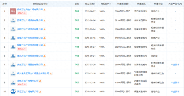 可查询的资料显示,由新华人寿保险股份有限公司和中金资本运营有限公司持有的坤华(天津)股权投资合伙企业(有限合伙)连续收购了万达在宣城、铜陵、安阳、四平和扬州的5座万达广场。