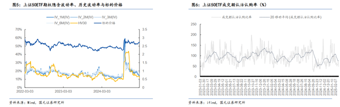 3. 本周大盘指数期权的隐含波动率边际下降,标的价格上升,认沽认购比率继续边际回落,市场情绪偏向乐观。