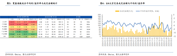 • 大宗交易情况显示中证800成交较为活跃,本期全A折价率小幅收敛。