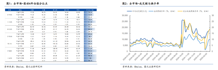 2. 本周市场交易活跃度持续上升,全A日均成交额上升至1.88万亿,创业板指周换手率为18.64%。