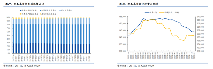 • 截止25年1月底,私募基金备案规模环比上升0.06%。其中,私募证券投资基金规模环比上升0.40%,数量环比下降0.08%,数量已连续下降9个月。