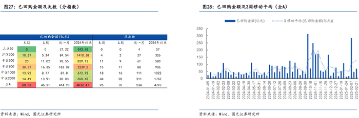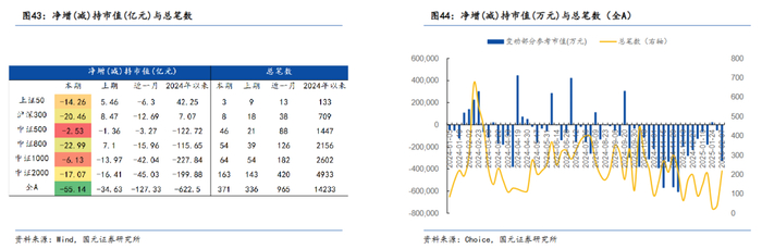 • 本周回购金额为68.53亿元,较上周边际提升,2024年以来中证800、沪深300已回购金额分别达2239.5亿元、1410.38亿元。