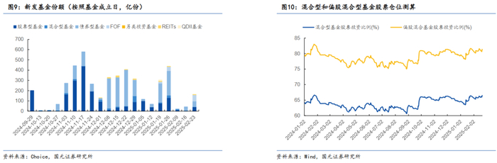 1. 新发基金份额增加。本周新发基金份额边际增加,股票型基金合并发行份额41.38亿元。本周公募混合型基金估测仓位边际上升,偏股混合基金估测仓位小幅度下降,分别为66.51%和81.38%。