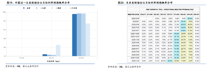 • 美联储维持利率不变的预期略有回落。本周对最近一次(2025年3月19日)美联储会议维持利率不变的概率为95.5%,而降息25bp的概率为4.5%。