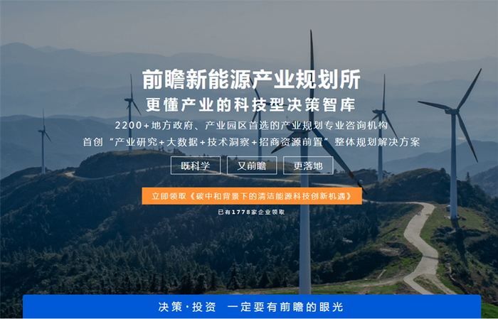 作为更懂产业的科技型决策智库,前瞻产业研究院深耕行业研究26年,并帮助300+城市完成并落地2000+规划项目,在新能源领域积累了深厚的经验。为了能够帮助地方政府既科学又前瞻更落地推动新能源高质量发展,前瞻产业研究院特此成立了“前瞻新能源产业规划所”,并独创性提出“前瞻新能源产业高质量发展作战体系”,严谨、科学、专业地制定新能源产业规划,最终以“一屏两案四清单”实施交付。