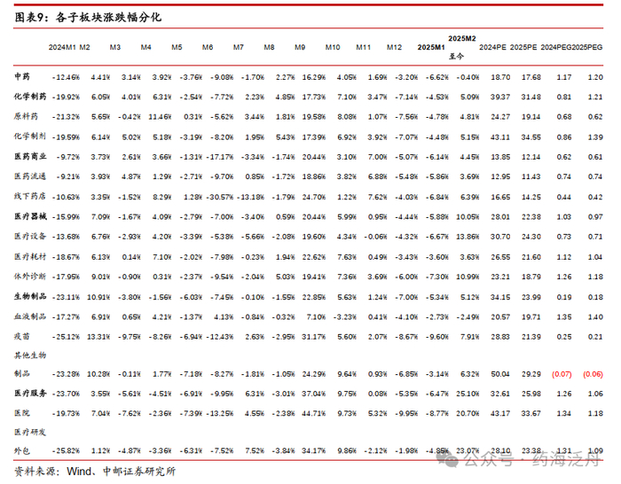 通过分析24年业绩预告中底部表现出显著业绩改善和增长潜力的细分领域及个股,以及结合AI这一市场热点,当前我们看好创新药、低值耗材、AI+医药三大板块。