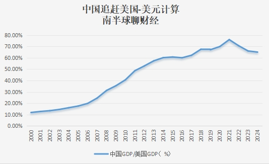 粗略假设名义GDP=实际GDP+CPI+0.5%,那么2025-2035年美国的年平均名义GDP增速大概是3%附近,这意味着汇率不波动的情况下,中国目前的增速无法在2030年左右超过美国。