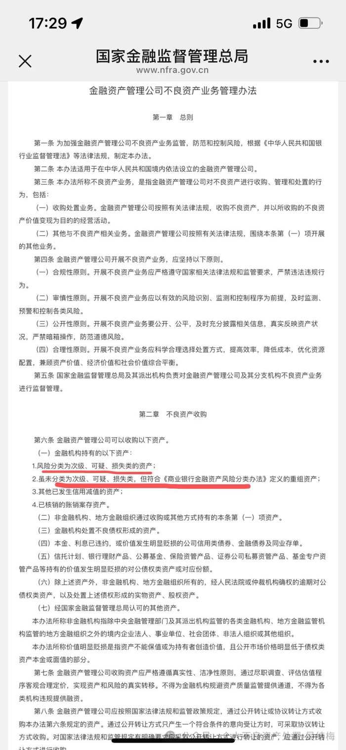 下图所示是国家金融监督管理总局2024年11月11日公布的《金融资产管理公司不良资产业务管理办法》👇👇
