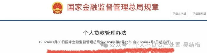 下图所示是原银保监会更名为“国家金融监督管理总局“2024年1月30日所发布的《个人贷款管理办法》👇👇