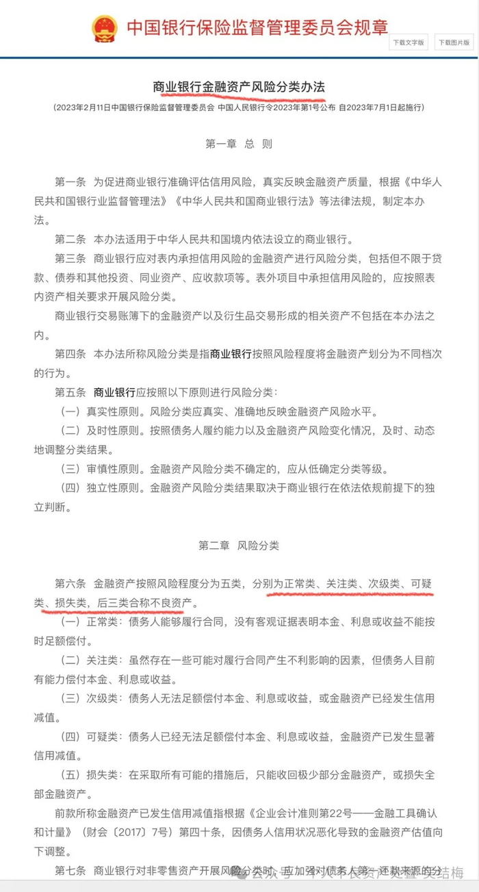 下图所示是原银保监会所发布的《商业银行金融资产风险分类办法》👇👇