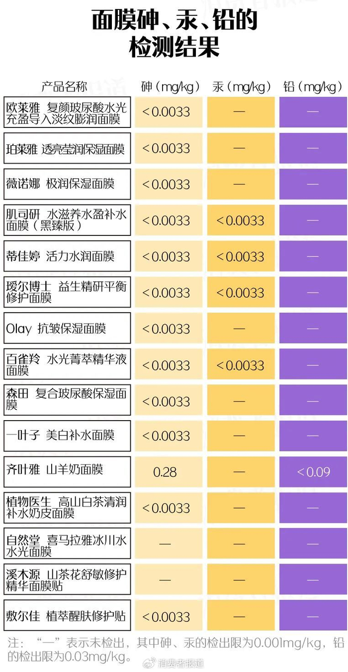 15款面膜测评③:13款检出砷、汞、铅的一种或以上