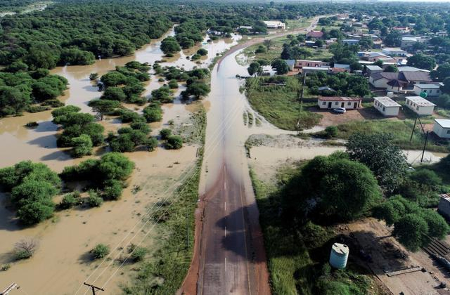 2月23日,博茨瓦纳哈博罗内拍摄的积水区域。