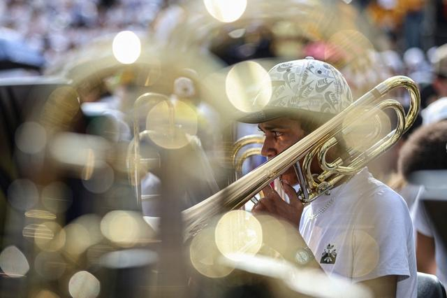 2月23日,委内瑞拉首都加拉加斯,一名乐手在庆祝国家青少年乐团救助体系创立50周年的音乐会上演奏。