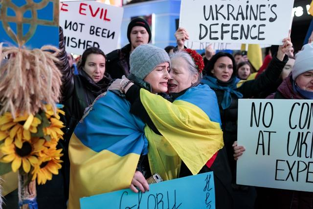 2月24日,美国纽约民众举行集会,纪念俄乌冲突三周年。
