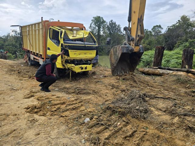 2月24日,印度尼西亚廖内省珀拉拉万县,打捞出的事发货车。