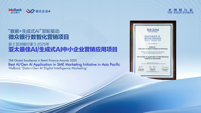 微众银行企业金融数智化营销实践获《亚洲银行家》2025年“亚太最佳AI/生成式AI中小企业营销应用项目”奖