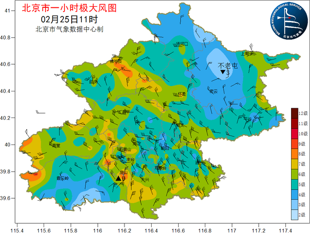 25 日(周二)下午:晴;偏北风 3、4 级,阵风 6、7 级;平原地区最高气温 10℃,山区最高气温 6~10℃;最小相对湿度 10%。