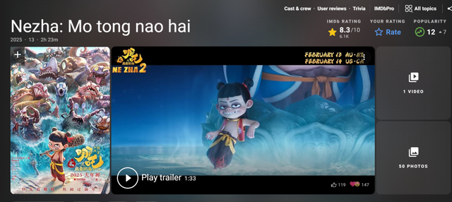 首先是关注度上,由于《哪吒2》实在是太火,特别在打破多个票房纪录之后,很难不“勾”起海外网友的好奇。在一条讨论《哪吒2》登顶世界动画电影影史票房榜单的帖子下,一位自称在中国当外教的网友提道,“他们完全是狂热的状态,有个学生都看了7次了。”