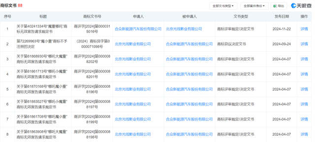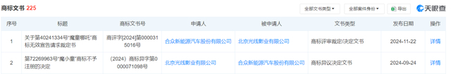 此外,哪吒汽车于2023年申请的一枚“魔小童”商标曾受到光线影业的异议,最终被商标局决定不予注册。光线影业还申请对哪吒汽车所申请的哪吒大魔童、哪吒小魔童等商标进行无效宣告。