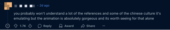 当然,这并不是个例。在有“美国版贴吧”之称的Reddit上,海外网友同样表达出对《哪吒2》的喜爱。