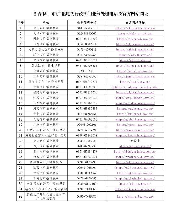 1.所在省(区、市)广播电视行政部门业务处理电话,以及官方网站等线上渠道;