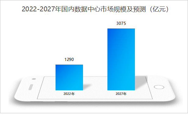AI时代下,算力需求高增,数据中心市场空间快速增长。预计2022-2027年,国内数据中心市场规模从1290亿元增至3075亿元,年复合增长率高达18.97%,也有望推动公司IDC产品快速放量。
