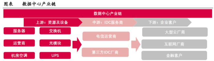 算力需求增加,将推动数据中心建设加速,上游芯片、光模块、服务器、交换机和液冷等硬件,作为数据中心的重要组成部分,将迎来放量。