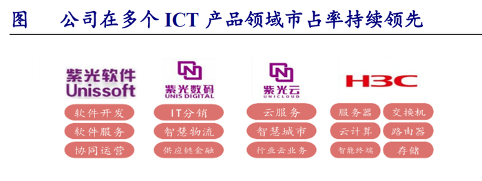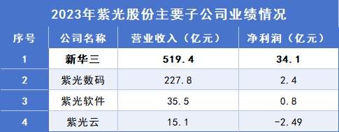紫光数码主要负责IT分销业务,紫光软件负责软件开发,紫光云则是政企客户云服务提供商,也是新紫光集团唯一云计算业务主体(但2023年仍为亏损状态)。