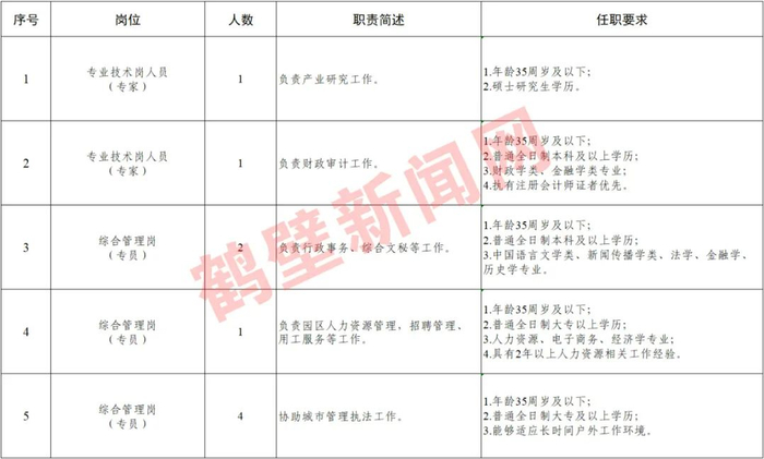大专可报!鹤壁经济技术开发区招聘派遣制工作人员