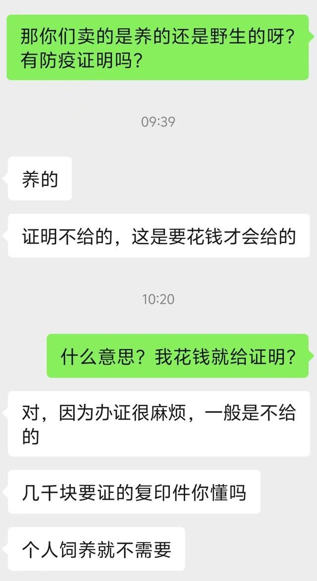 比如,店铺“俊烽宠物店”的客服表示其销售的土拨鼠接种过狂犬和鼠疫疫苗,“日后不需要再接种疫苗了,即便被咬了,肥皂水清洗一下,酒精消毒即可。”面对记者追问防疫证明,店家表示“办证很麻烦,一般是不给的”“几千块要证的复印件”;记者还想了解详情,对方不再理睬。