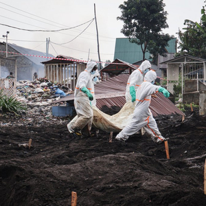 当地时间2025年2月20日,刚果(金)布卡武,红十字会成员埋葬冲突遇难者。