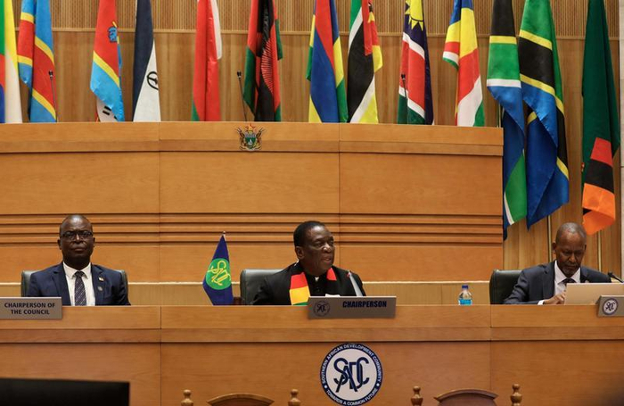 当地时间2025年1月31日,南共体轮值主席、津巴布韦总统姆南加古瓦(中)在津巴布韦首都哈拉雷举行的首脑特别会议上发言,呼吁各方通过对话恢复刚果(金)东部地区的和平与安全。