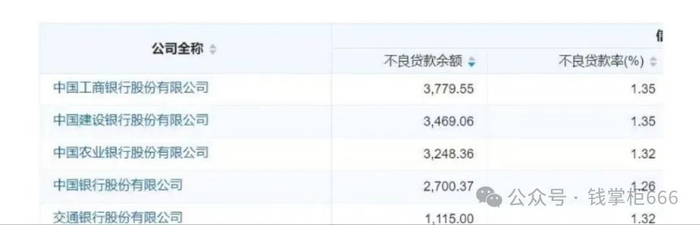 前面2点很多老铁应该能看懂啥意思,第三点中的不良率估计很多人不知道代表啥意思? 不良率是指银行不良资产占全部资产的比率。简单的理解就是不良率越高,坏账率越高。截止2024年上半年,全国商业银行的平均不良率在1.56%。再给大家看看国有银行的不良贷款率,如下图:
